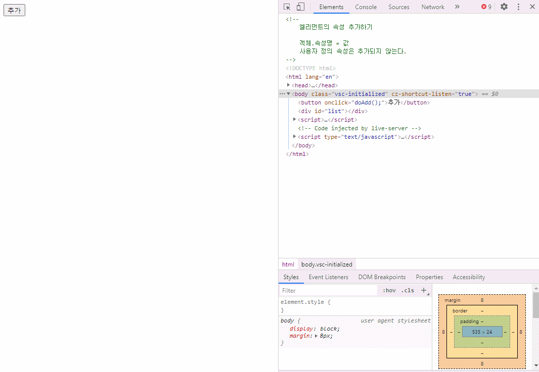 | JavaScript - 엘리먼트의 값 추가, 삭제(innerHTML, remove) (0) | 2020.06.03 |