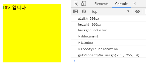console.dir("getPropertyValue" + document.defaultView.getComputedStyle(divEle).getPropertyValue("background-color"));