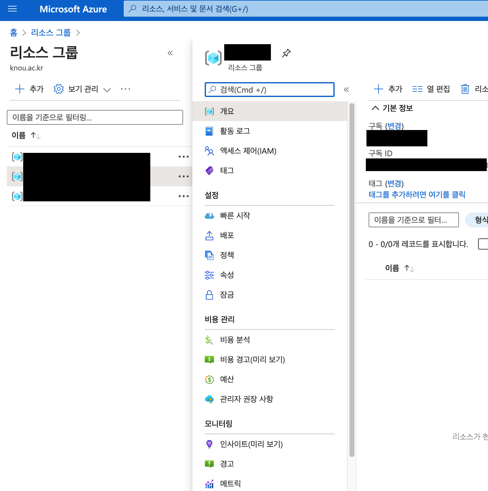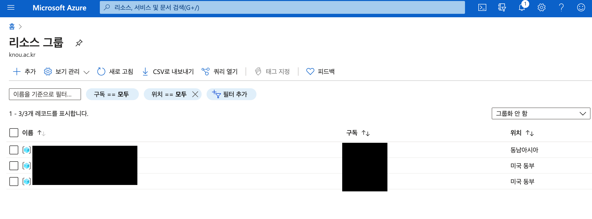 리소스 그룹명 확인