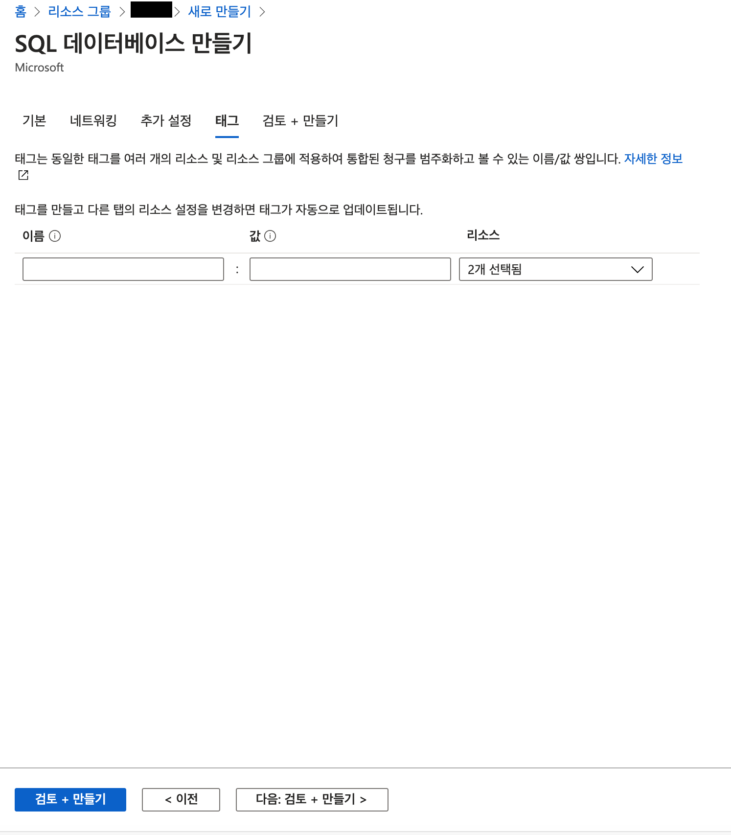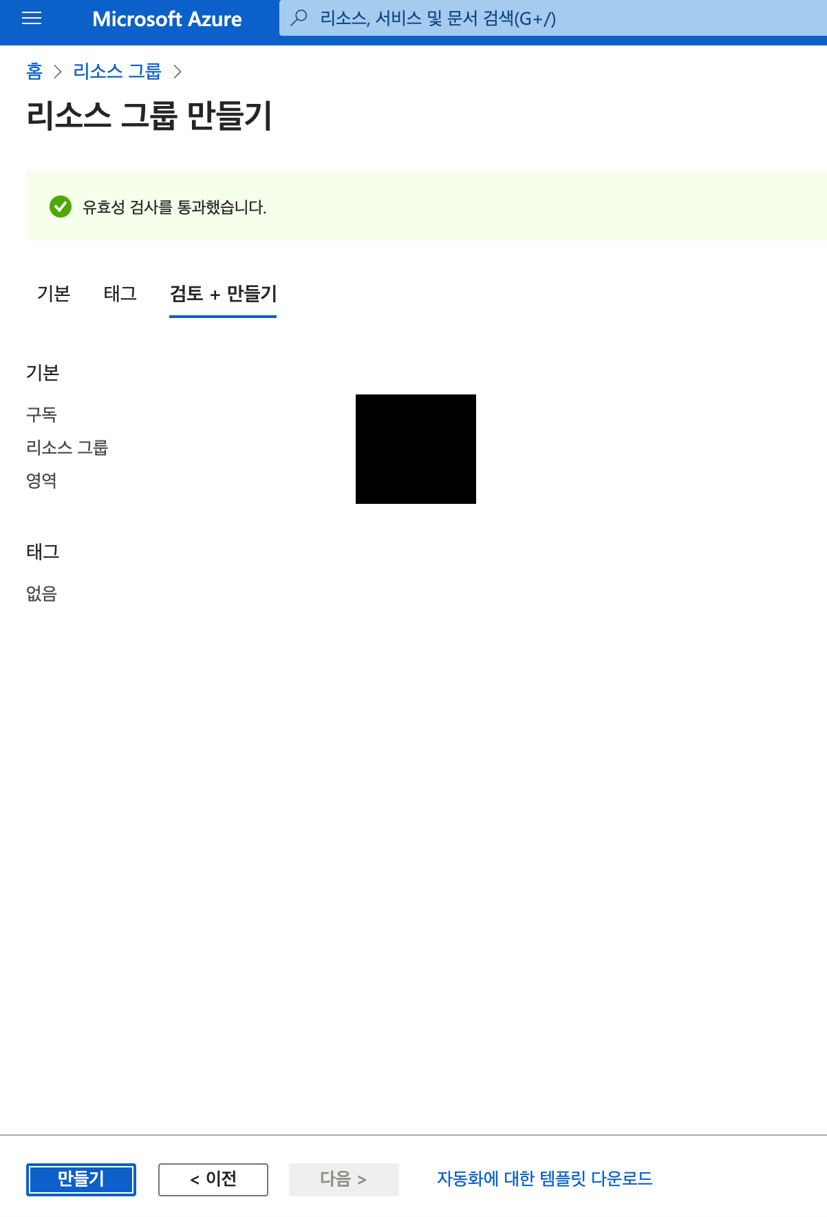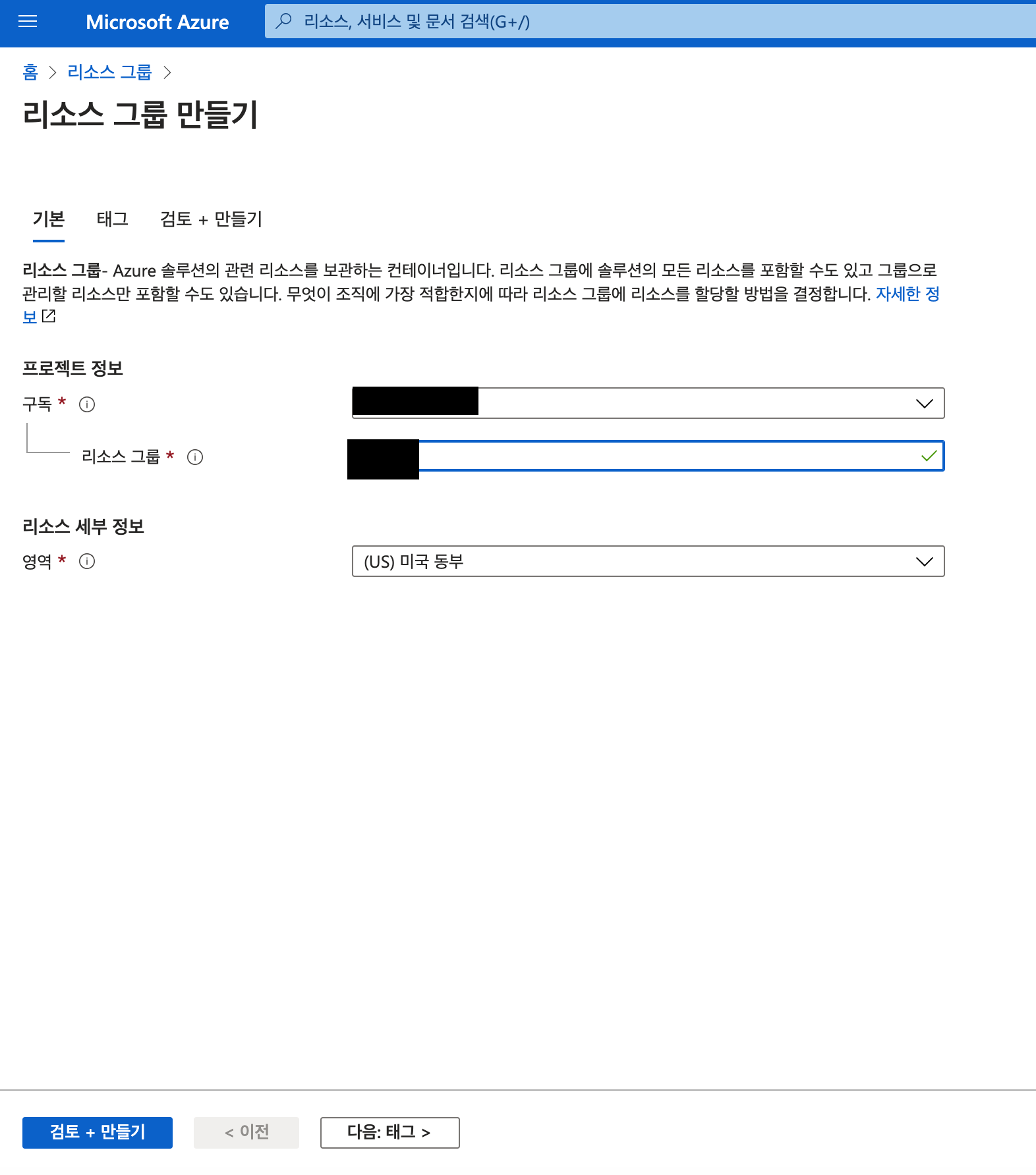 리소스 그룹명 입력