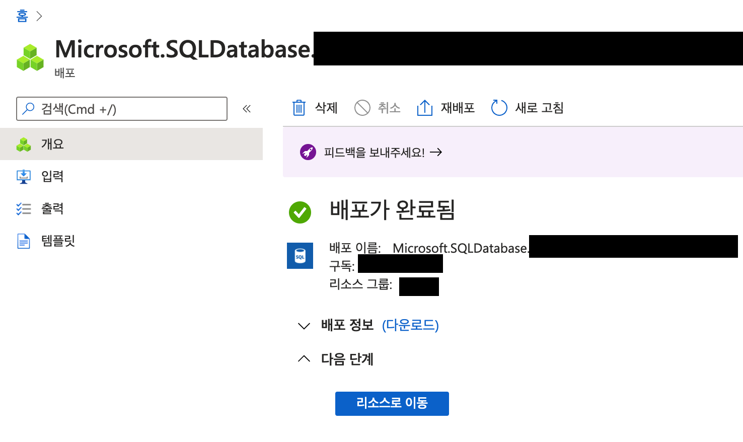15. 서버를 처음 설정할 경우 배포시간이 소요될 수 있으며 배포 완료 후 리소스로 이동