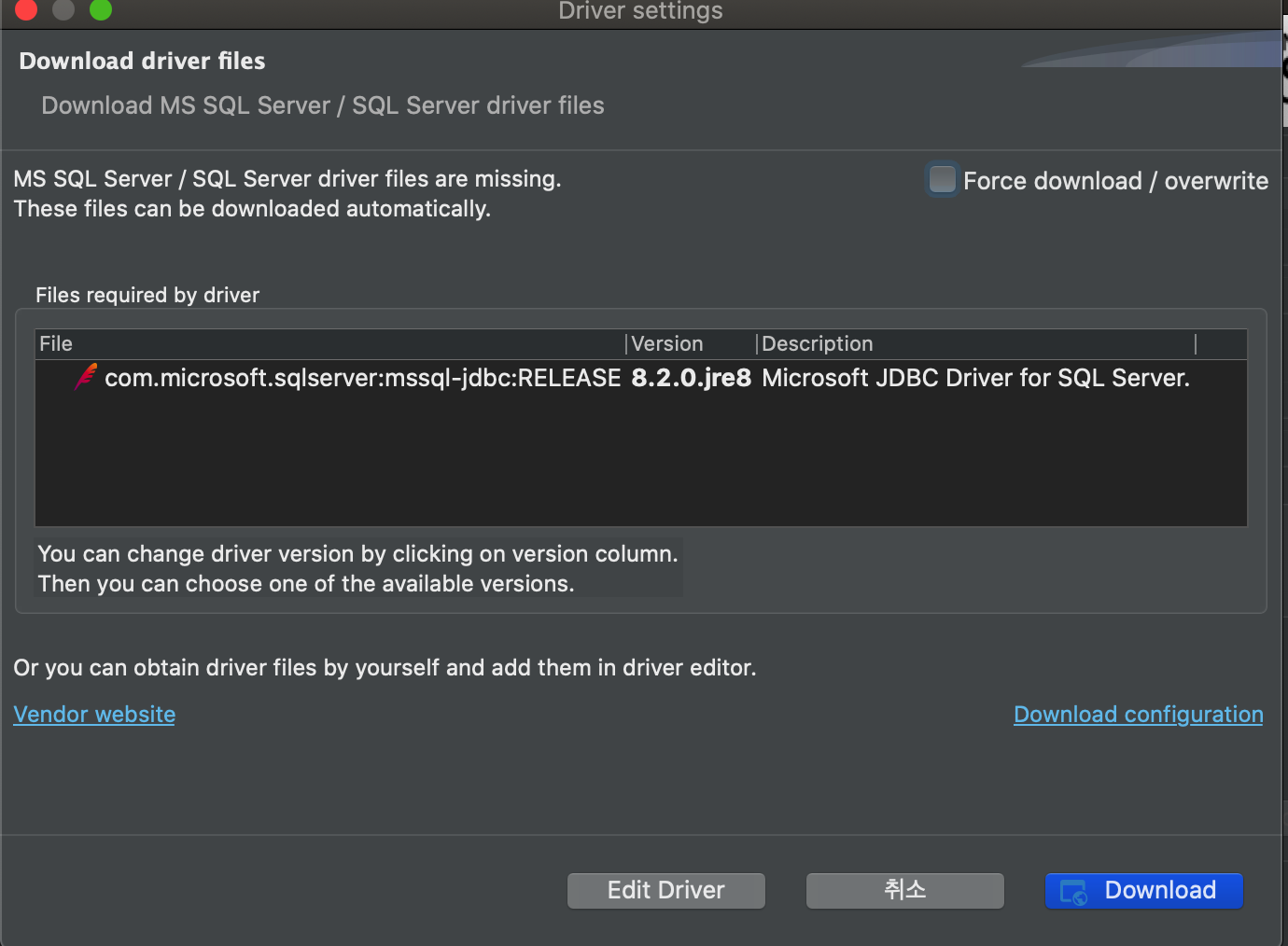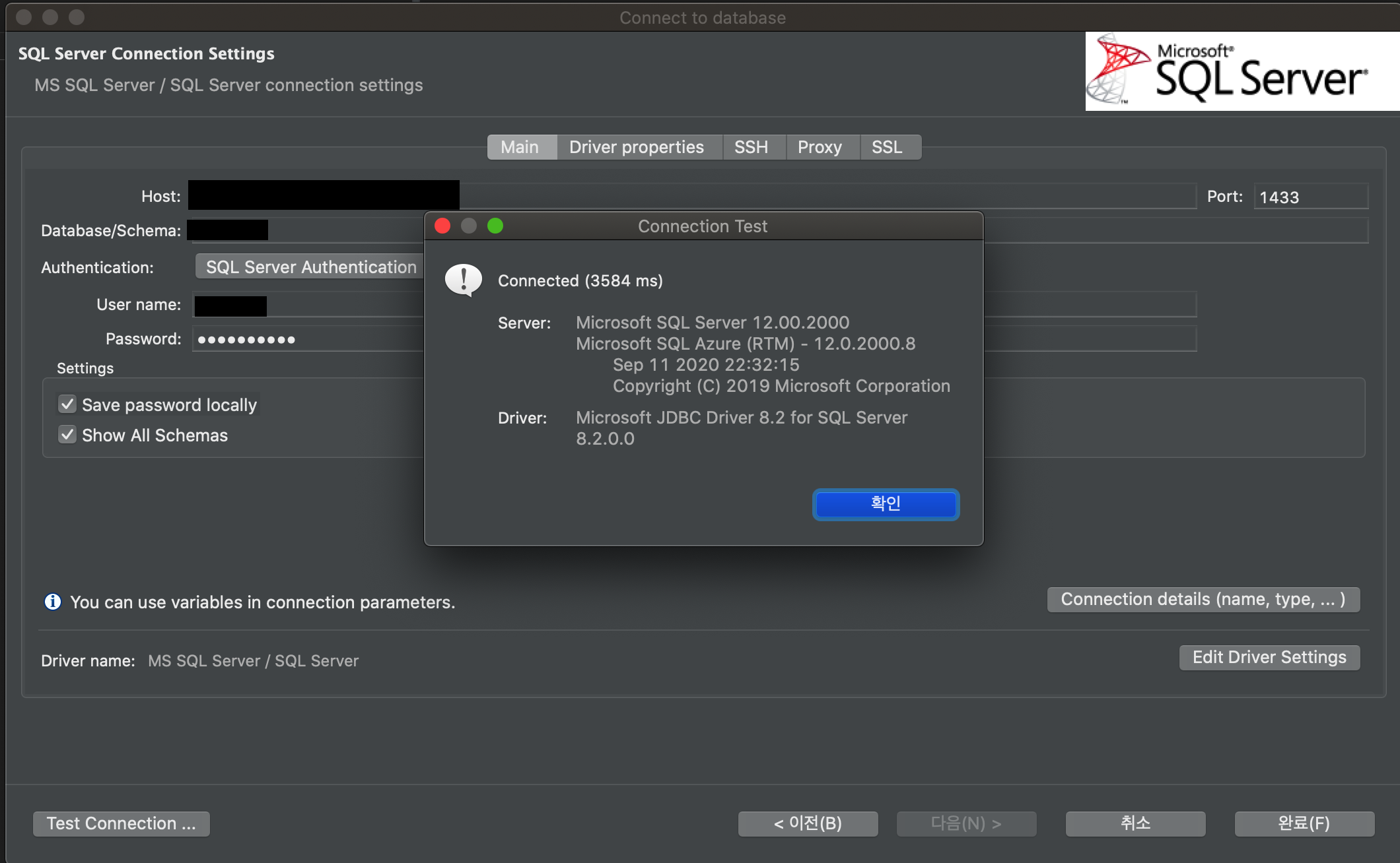 19. Test Connection 선택 후 드라이버를 설치 후 연결 테스트 확인