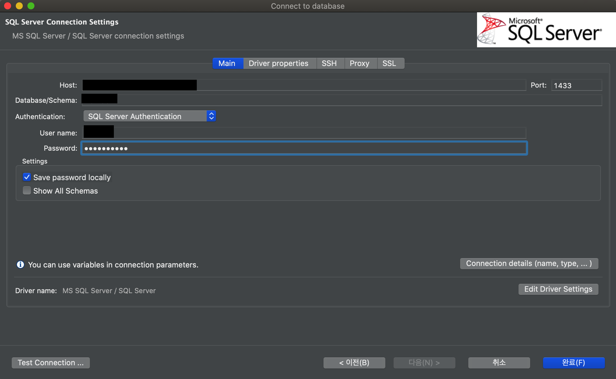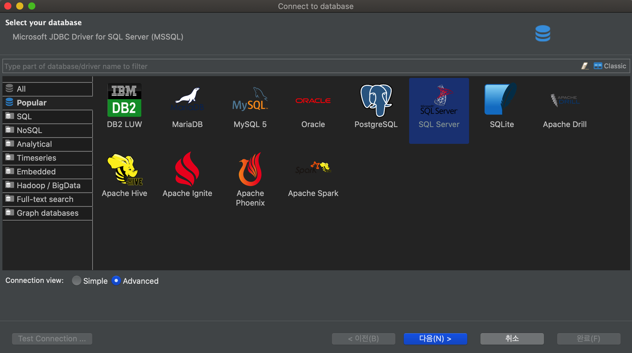 SQL Server 선택 후 진행