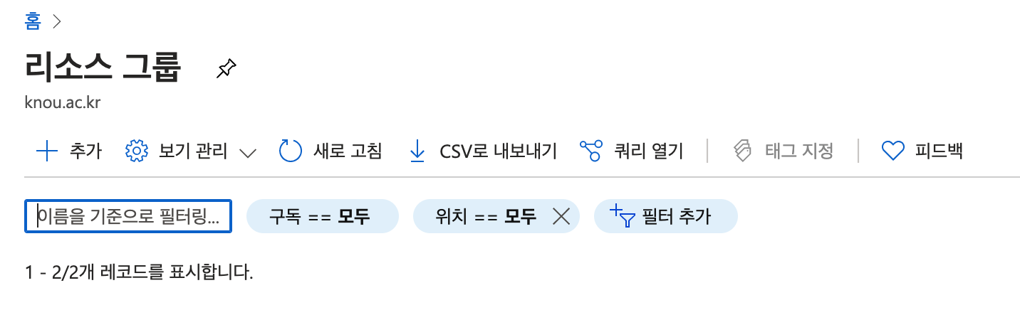 5. 생성이 완료되면 리소스 그룹 리스트에 추가한 항목이 출력된다