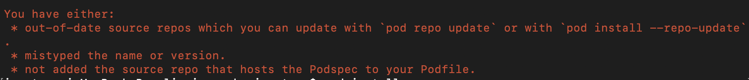 [Cocoa Pods] pod install 실행시 Analyzing dependencies(의존성) 에러 발생할 경우